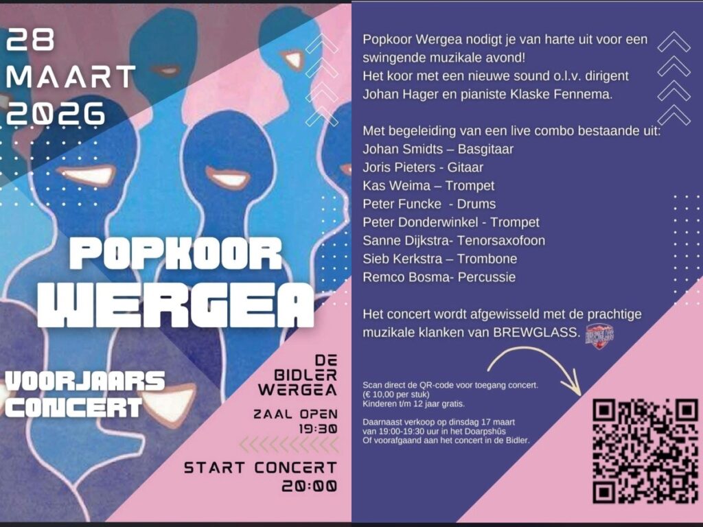 Popkoar Wergea is in mingd koar. Se hawwe kommende sneon, 28 maart, yn Wergea in foarjierskonsert. Se nûgje elkenien fan herte út om oanwêzich te wêzen by dizze feestlike muzikale jûn. Klaske Fennema begelied dit koar op piano.