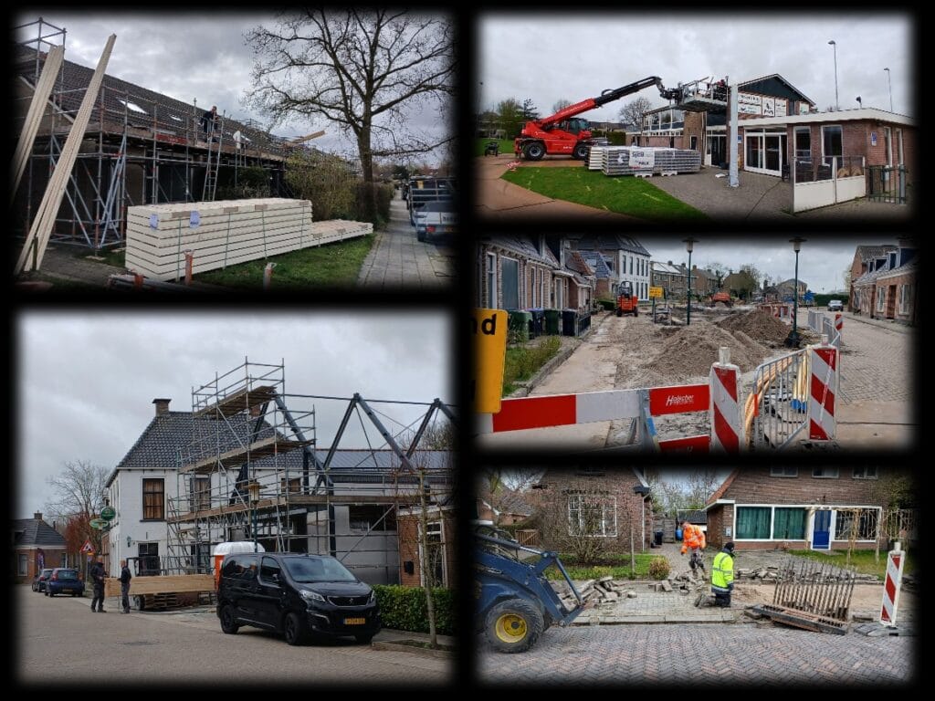 It tilt op 't heden op fan wurkbuskes, mei allegear boumantsjes en -wyfkes. It hiele doarp leit op syn kop. Strjitlizzers pakke stoepen oan, de sportkantine kriget in nij dak, de Haven leit noch folop yn renovaasje, der is nijbou foar Boonstra Rioolservice en dan is de wenningbou ek noch drok dwaande yn in tal wennings. It moat earst op syn mâlst, mar dan leit alles der straks wer strak by.